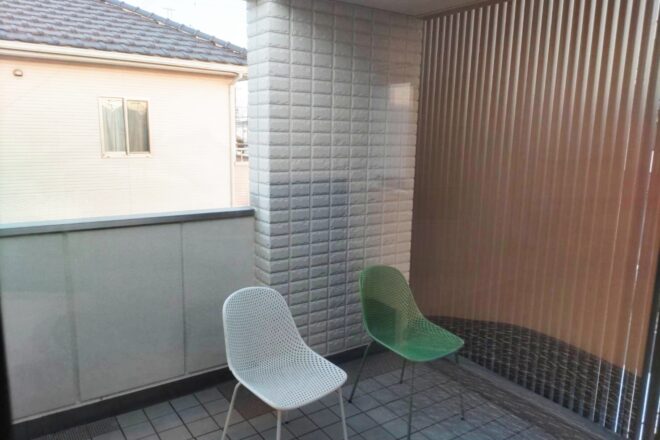 2階のリビングは視線を遮る木目調のバルコニーで、カーテンいらずの開放感。